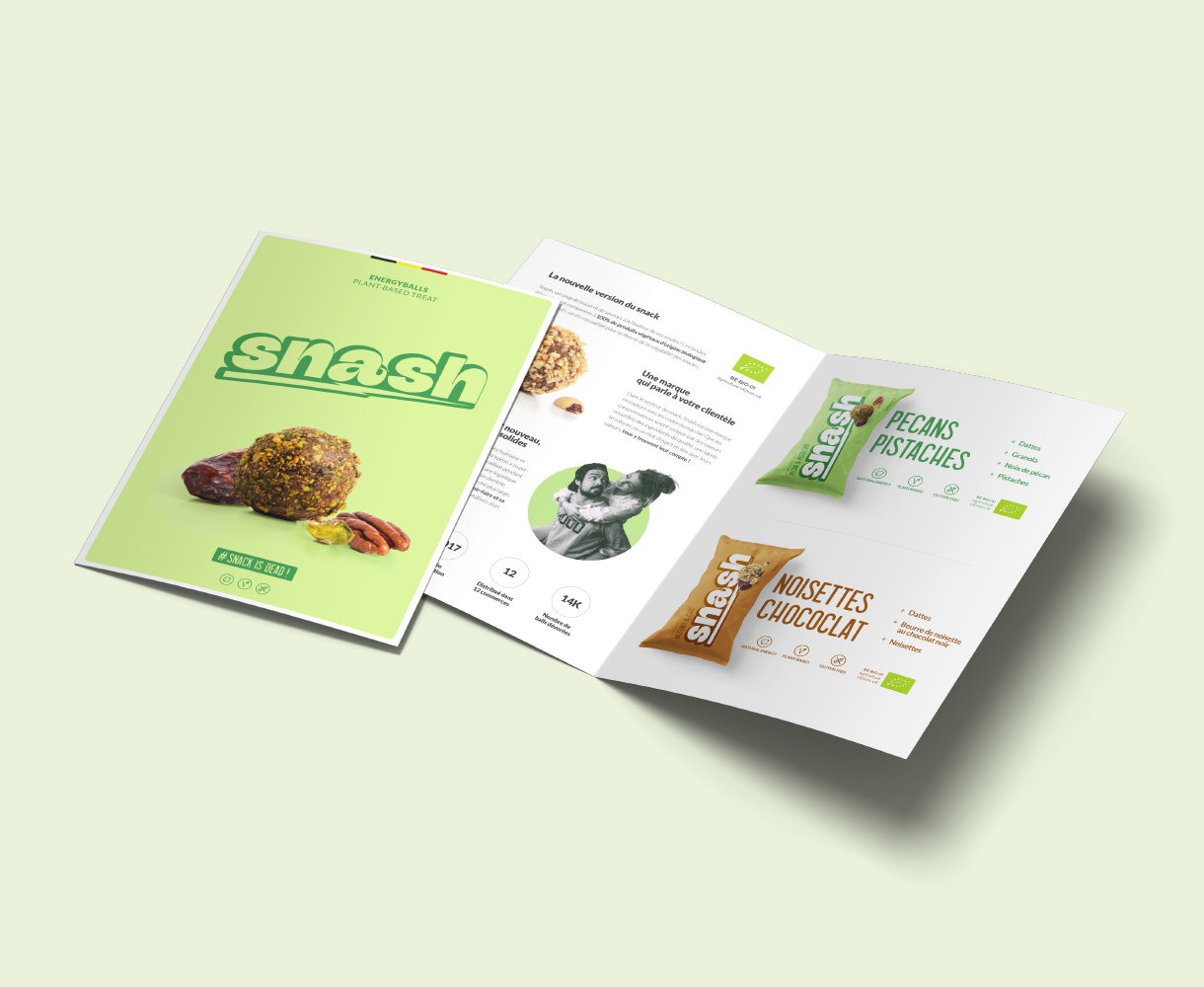 Au départ d’une analyse concurrentielle et d’ateliers stratégiques, nous avons défini le positionnement B2C et trouvé le nom qui ferait la différence : Snash. Plus audacieuse, plus affirmée, la marque porte une promesse claire : Where snack is dead, Snash is born!